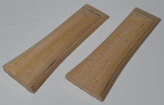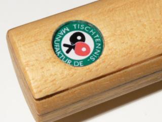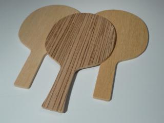 hergestellt. Zunächst werden die Rohlinge der Hölzer aus ausge- suchten, hochwertigen Furnieren unterschiedlicher Holzar- ten in mehreren Arbeitsgängen zu rechteckigen Platten verklebt. Hierbei werden sowohl aufwändige traditionelle Leimtechniken wie z. B. warm zu verarbeitende Glutinleime als auch hochmoderne Klebeverfahren eingesetzt. Neben den Furnieren kommen bei einigen Hölzern ver- schiedene hochwertige Verstärkungsfasern zum Einsatz. Das Bild rechts zeigt Carbongewebe, Aramidgewebe sowie Carbon-Aramid-Hybridgewebe. Die Verklebung der faser-verstärkten Hölzer erfolgt stets mit Zweikomponenten-Epoxidharzen. Die Härte der Verklebung läßt sich hierbei durch geeignete Auswahl der verwendeten Harzsysteme beeinflussen. Die Rohlinge verbleiben je nach Art der Verklebung zwischen mindestens 24 Stunden und mehreren Tagen in der Presse, um eine gute Aushärtung der Klebstoffe und Durchtrocknung zu gewährleisten und so einem Verzug der Hölzer vorzubeugen. Nach dem Trocknen werden die rechteckigen Rohlinge vorgeschliffen, anschließend wird die Schlägerblattform ausgefräst. Hierbei können verschiedene Blattgrößen realisiert werden. Auch Sonderabmessungen nach Kundenwunsch oder Kopien vorhandener Schlägerblätter sind gegen Aufpreis möglich. Die Griffschalen für die Hölzer bestehen entweder aus einem Stück (Vollholz) oder sie werden ebenfalls aus mehreren Lagen schicht- oder streifenverleimt. Hierbei sind zahlreiche Materialkombinationen möglich. Einige Beispiele finden sich in der Fotogalerie. Aus dem Griffschalenrohling wird die gewünschte Griffform einschließlich der Abrundung herausgefräst. Anschließend erfolgt das Anschleifen der Abschrägung am vorderen Ende und eines evtl. Daumenschliffs, bevor die Griff-schalen paßgenau auf das Schlägerblatt aufgeleimt wer- den. Nach dem Aufleimen der Griffschalen werden die Löcher für die Linsen gebohrt, der Brennstempel auf dem Schlägerblatt angebracht und der Endschliff des Holzes durchgeführt. Griff und Schlägerblatt werden in reiner Handarbeit sorgfältig ausgeschliffen, sämtliche Kanten sauber gebrochen und der Übergang vom Griff zum Schlägerblatt fein abgerundet. Das geschliffene Holz wird nun noch zum Schutz gegen Schweiß und Verschmutzung mit einer hochwertigen Oberflächenbehandlung aus einem biologischen Holzöl sowie ggf. einer zusätzlichen dünnen Lackierung zur Versiegelung der Schlagfläche versehen (Aufpreis). Abschließend werden die aus Polystyrol gefertigten Linsen mit dem Tischtennis-Manufaktur-Logo und der Holzbe-zeichnung eingesetzt - fertig! Die Linsen können auf Wunsch gegen Aufpreis auch mit deinem Namen oder ggf. einem Logo nach individueller Vorlage gestaltet werden. Bei Interesse bitte einfach unter der angegebenen Kontaktadresse anfragen. Weitere Zusatzleistungen wie spezielle Blattgrößen oder Griffausführungen, Kantenanleimer, farbig gestaltete Schlägerblätter etc. oder komplette Sonderanfertigungen mit individuellen Aufbauten sind ebenfalls möglich. | ![]() |